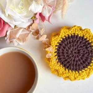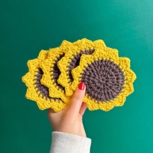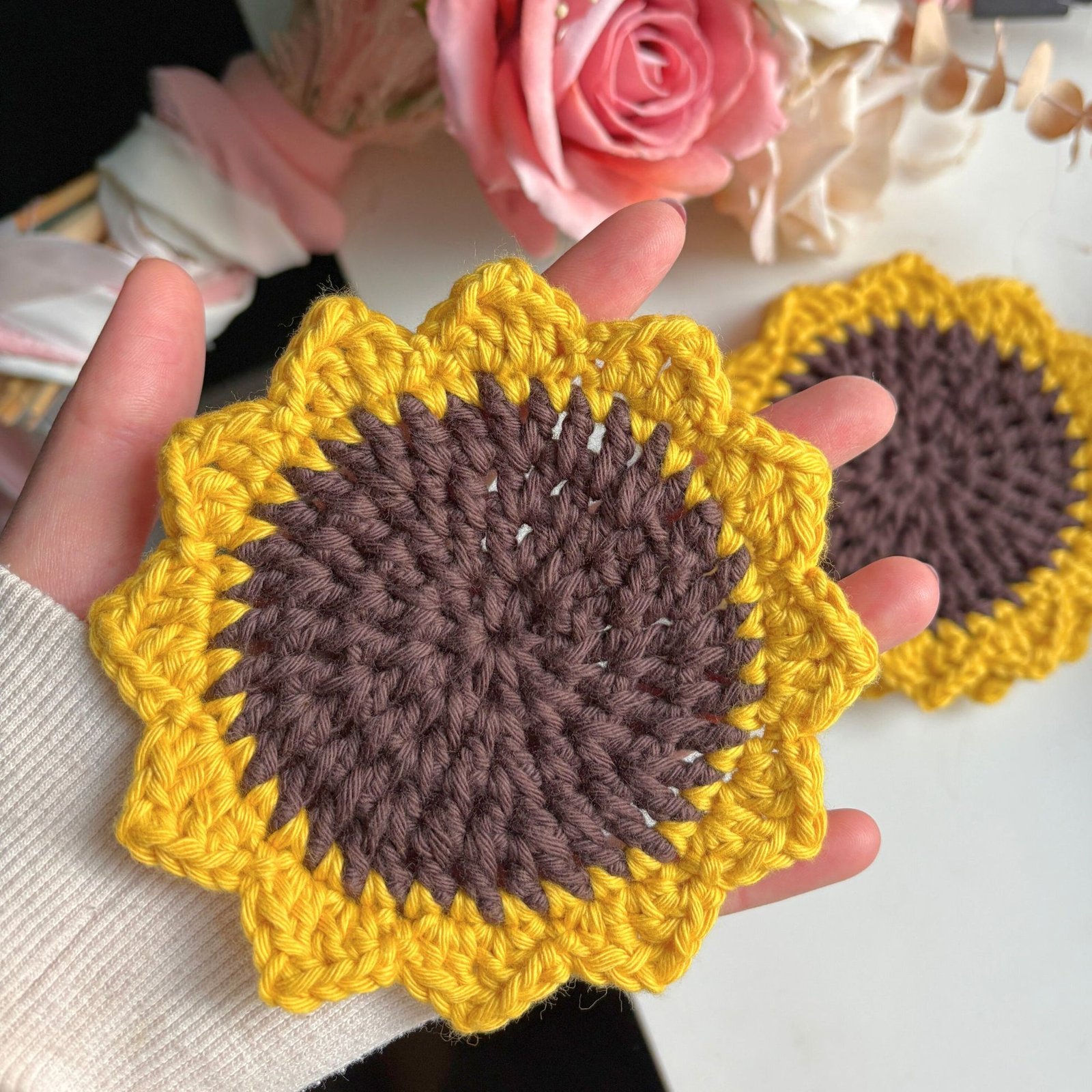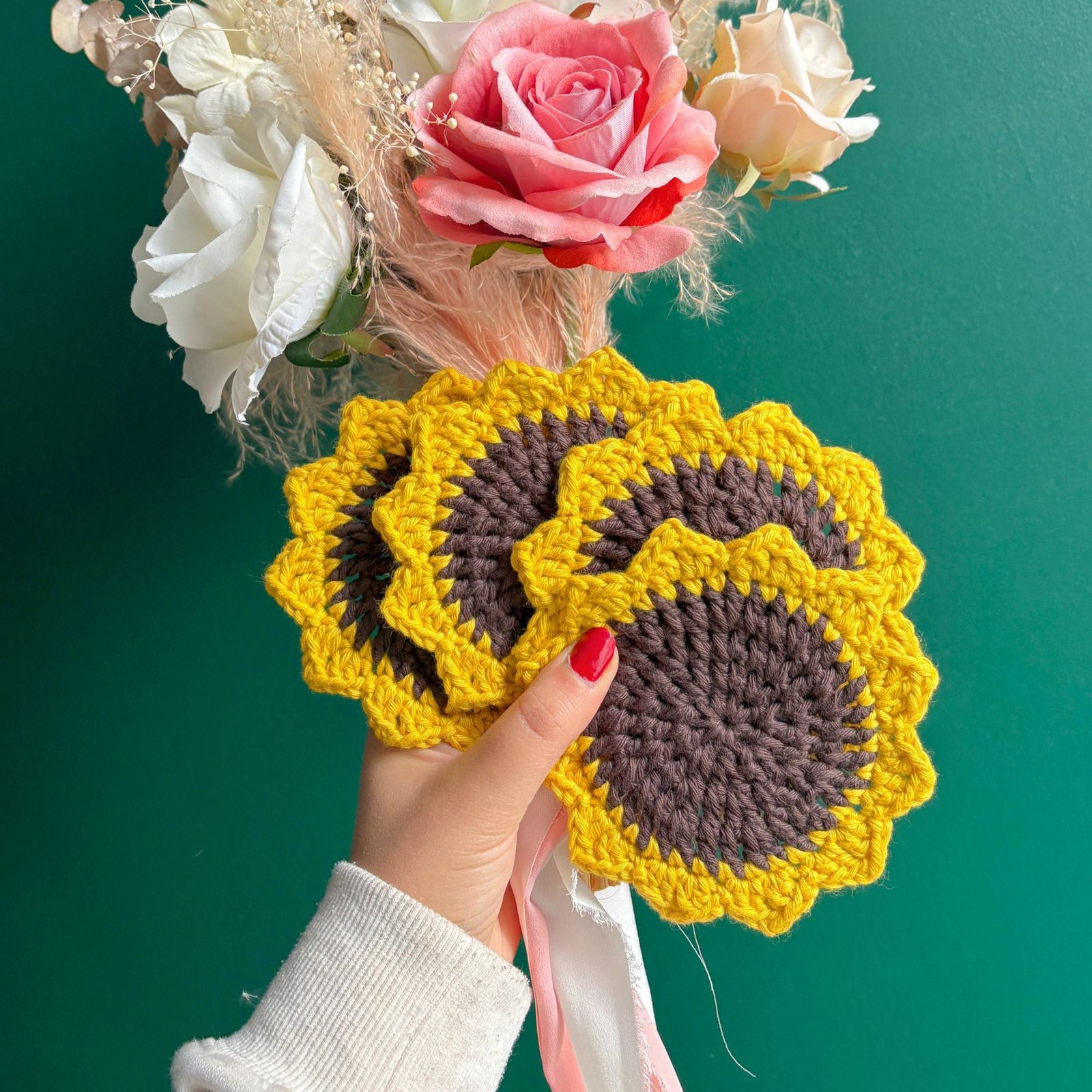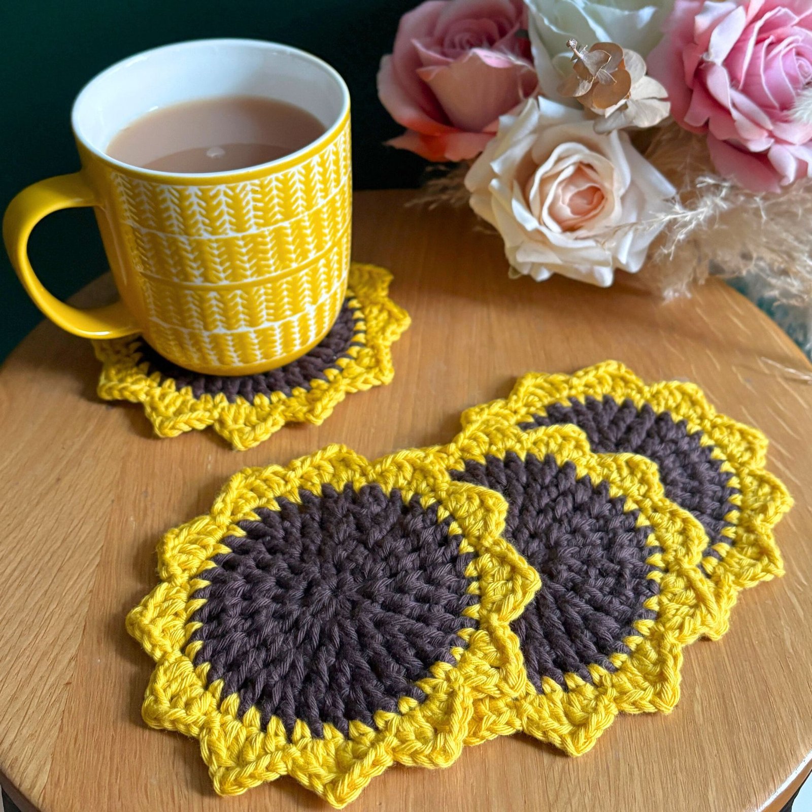 Set of 4 simple and bold sunflower crochet coasters, perfect gift for birthdays, Christmas and new home.