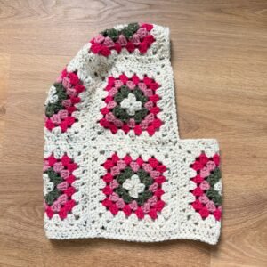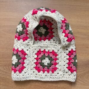 Handmade cream, pink and green crochet balaclava, made using soft acrylic yarn in a beautiful cosy selection of colours.
