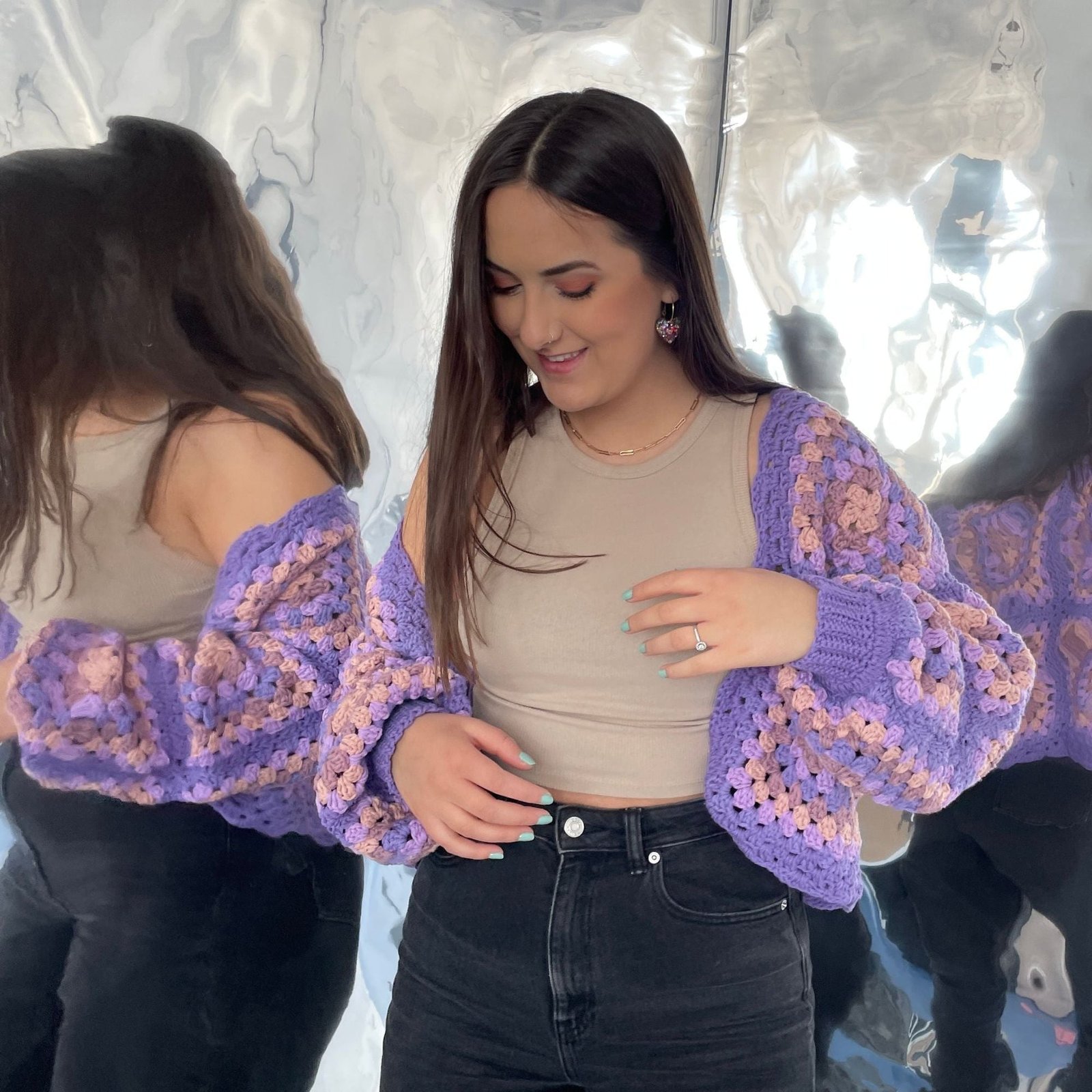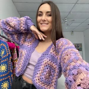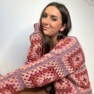 This crochet pattern is the first of Hixiiee’s patterns by popular demand! You can mix and match any colours you like, and adapt the pattern to your style making it individual to you. This crochet pattern is for a cropped cardigan, however you can very easily use the technique shown in the pattern to extend the length if you prefer.